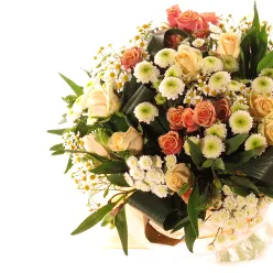 • Стандарт - роза - 3 шт., альстромерия - 5 шт., зелень, упаковка, лента