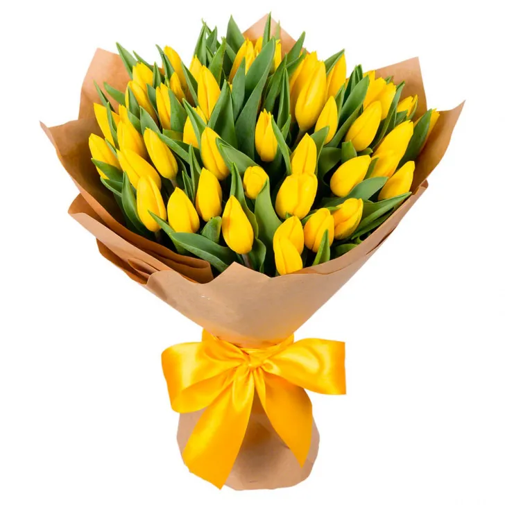 Состав букета: желтые тюльпаны,упаковка,лента