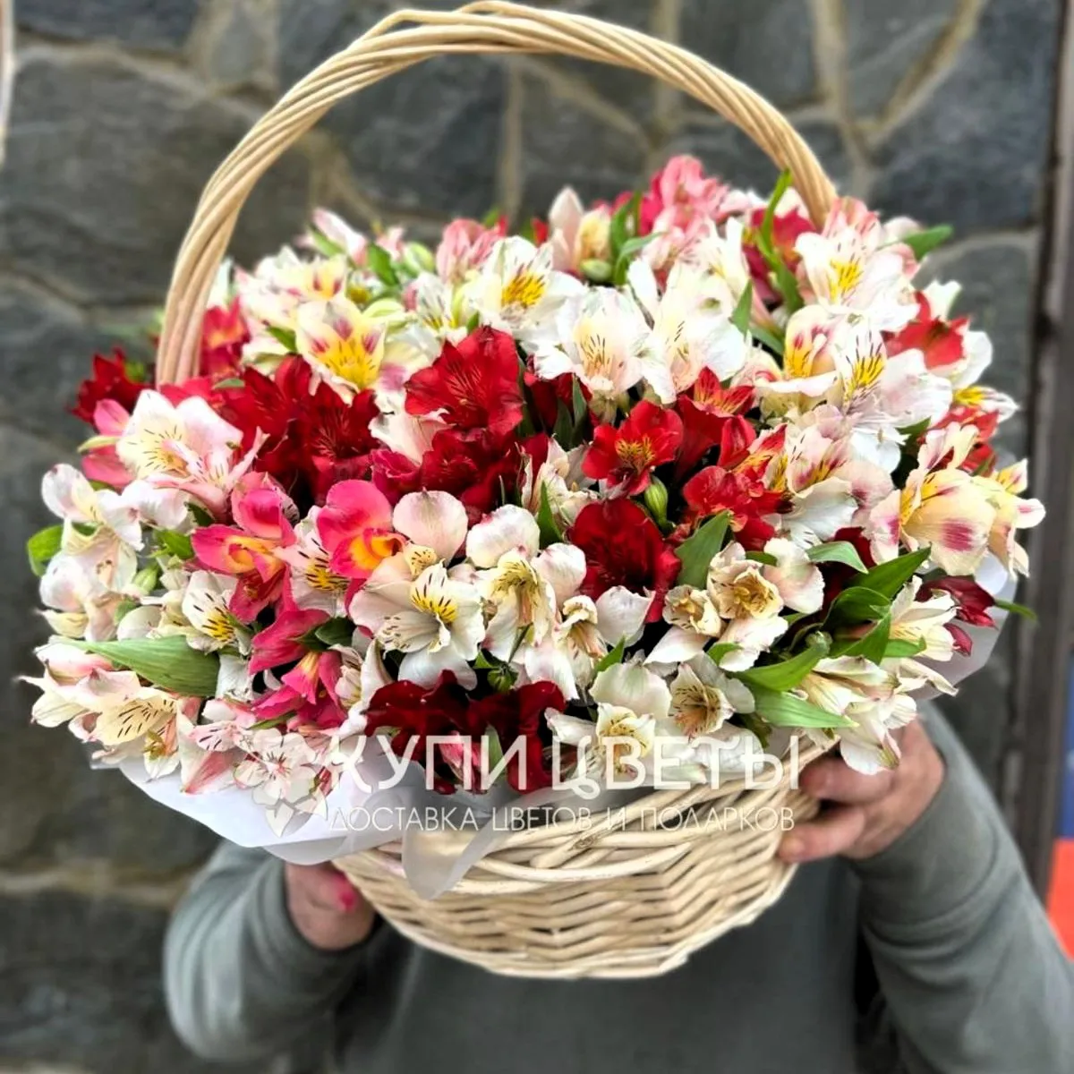 Подарите взрыв радости, оптимизма и ярких эмоций с этой восхитительной корзиной! Пышные бутоны белой, красной и розовой альстромерии – настоящие солнца, наполняющие пространство светом и позитивом. Белая альстромерия символизирует чистоту и невинность, красная – страсть и любовь, а розовая – нежность и благодарность. Этот цветочный ансамбль – идеальный способ выразить теплые пожелания, восхищение и пожелать безграничного счастья. Яркая композиция в корзине добавит праздничного настроения и жизнерадостности в любой день.