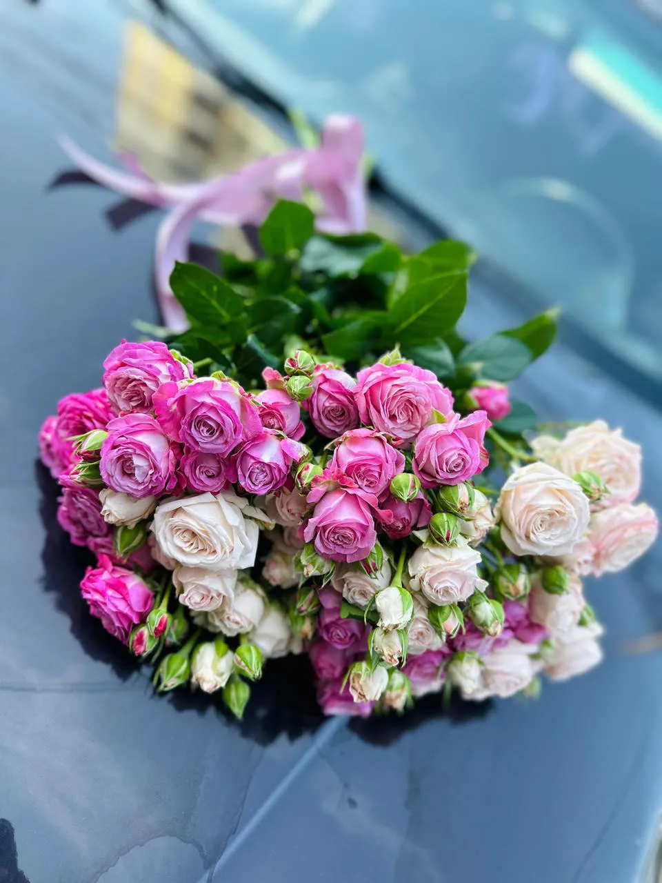 Этот букет из ярко розовых и нежно розовых кустовых роз — настоящая симфония цветов, которая восхищает и радует глаз. Яркие, насыщенные оттенки первых партий роз сочетаются с мягкими, пастельными тонами вторых, создавая удивительный контраст и гармонию.
