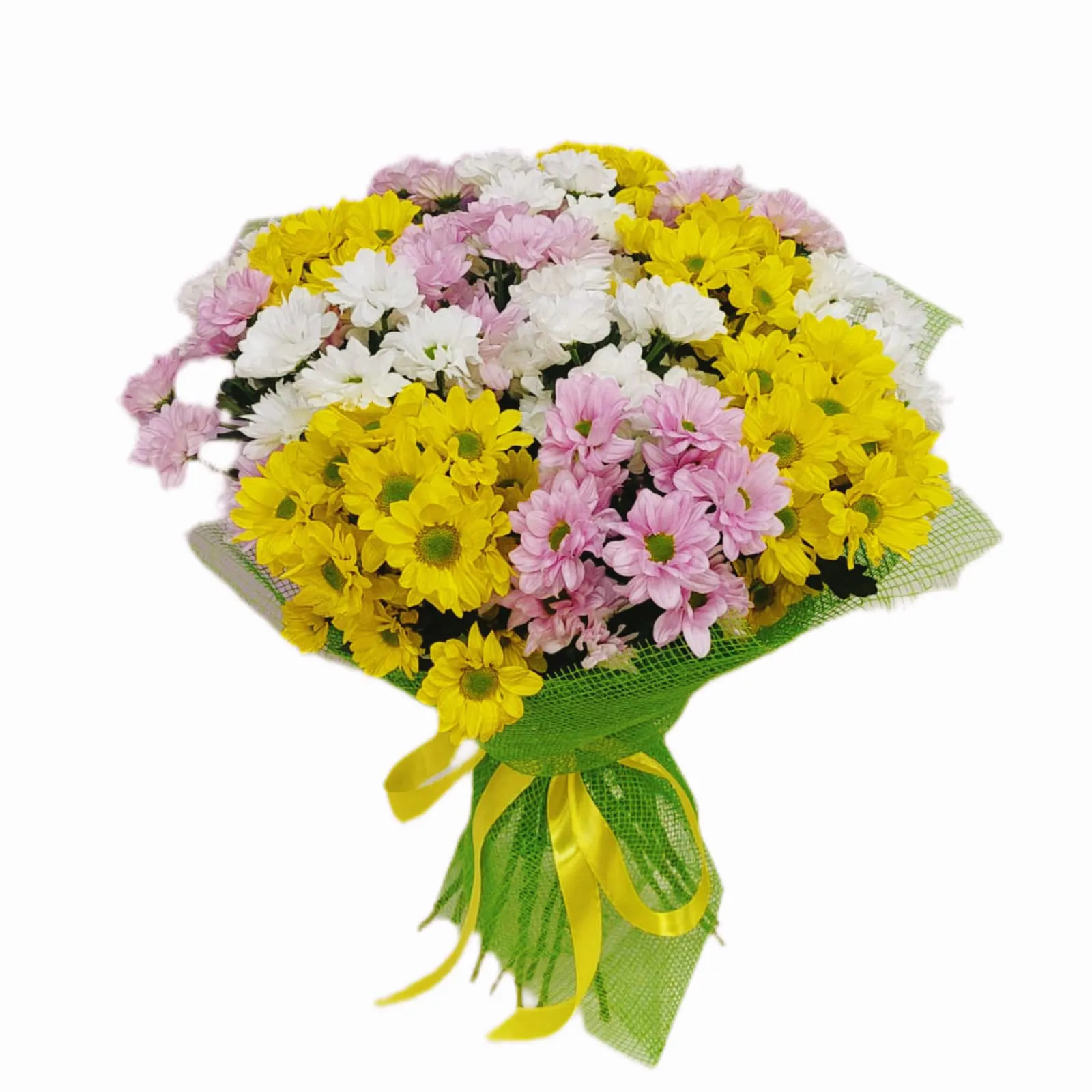 Хризантемы всегда были популярными и полюбившимися многим цветами, а сейчас наши профессионалы собирают из хризантем какие-то невероятно привлекательные шедевры. Разноцветное сочетание нежных цветов привнесет в дом получателя радостную и веселую атмосферу. Желтый привлечет солнечный свет, белый подчеркнет чистоту и невинность, а оттенки розового добавят яркости.