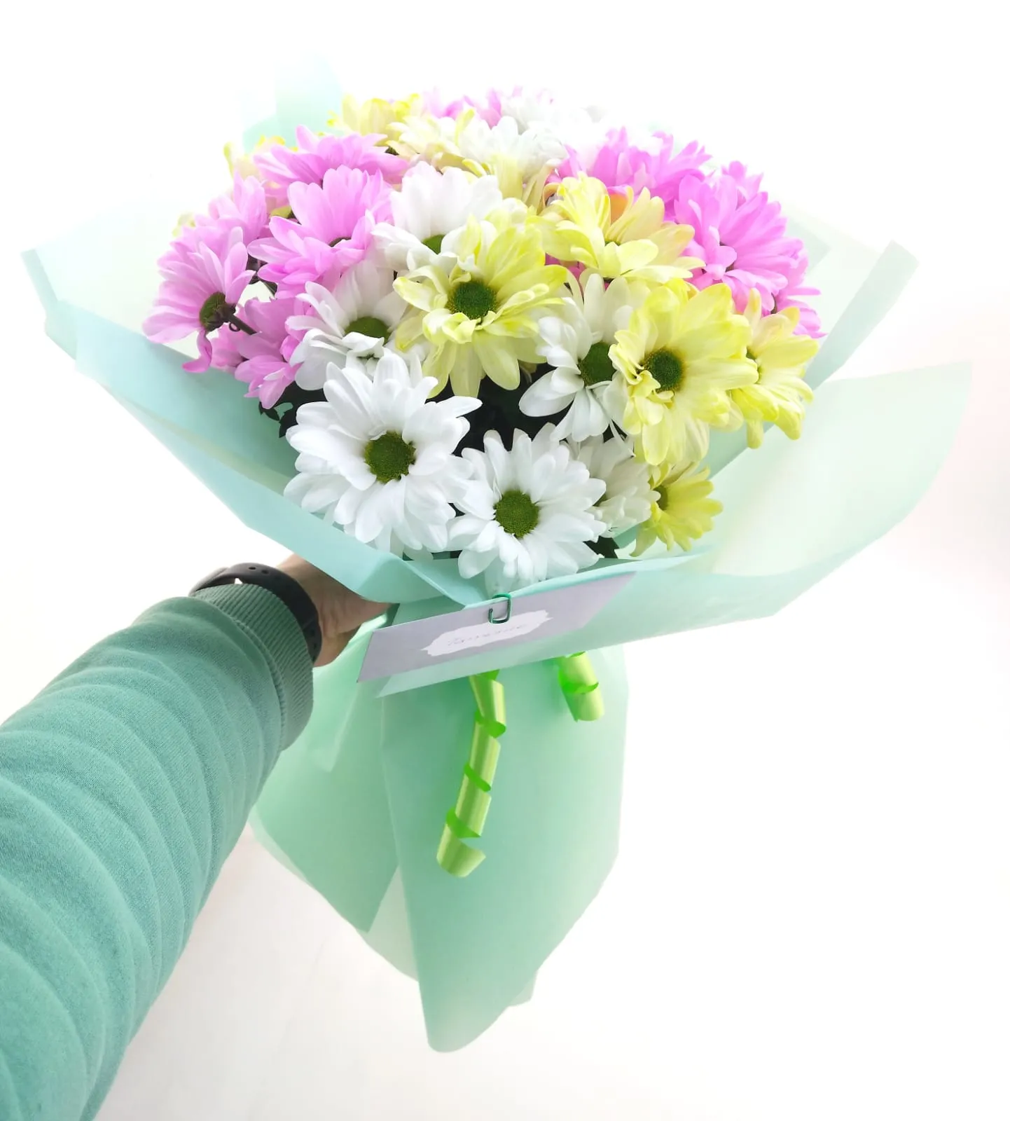 Букет из разноцветных кустовых хризантем Солнечный зайчик