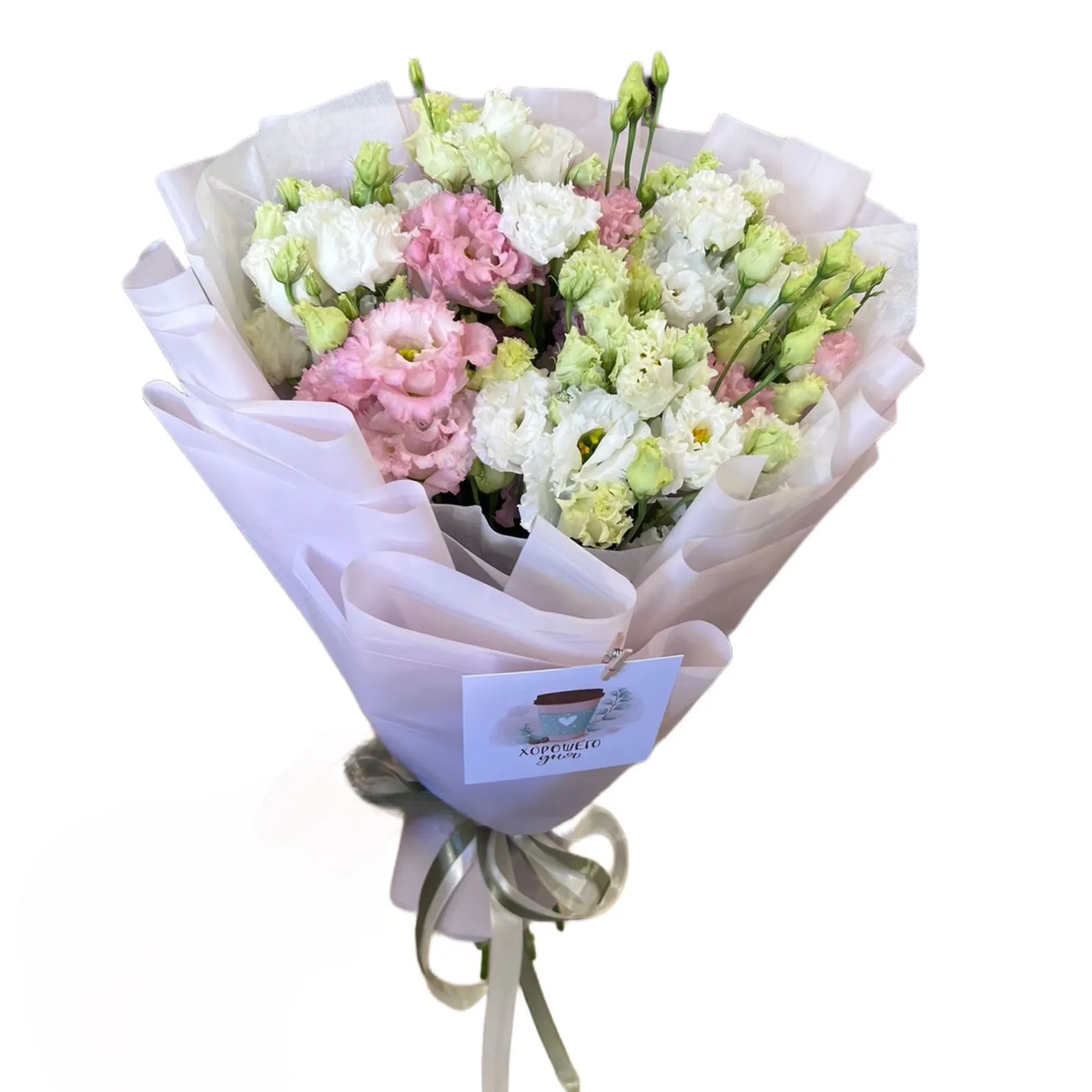• Премиум - эустома - 15 шт., зелень, упаковка, лента